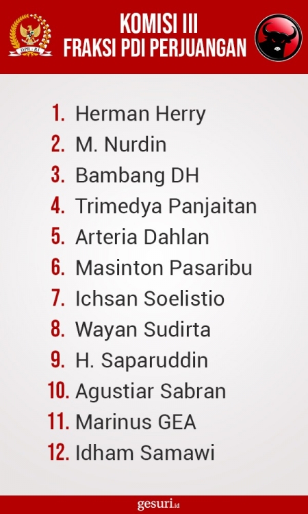 Daftar Nama Anggota Komisi III DPR RI Fraksi PDI Perjuangan