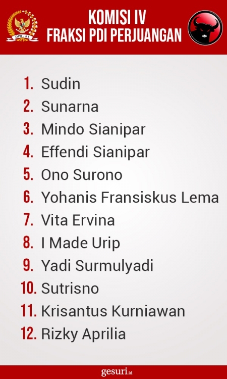 Daftar Nama Anggota Komisi IV DPR RI Fraksi PDI Perjuangan