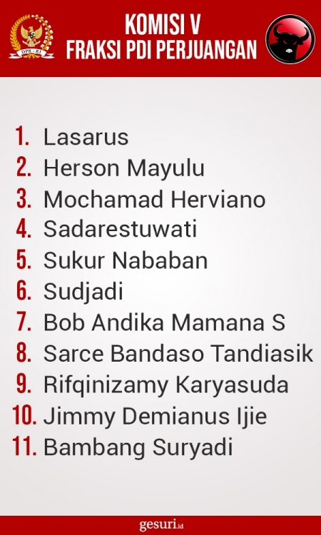 Daftar Nama Anggota Komisi V DPR RI Fraksi PDI Perjuangan