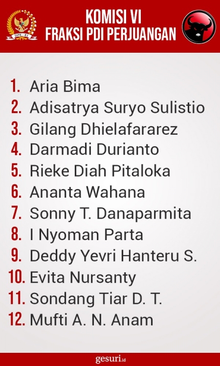 Daftar Nama Anggota Komisi VI DPR RI Fraksi PDI Perjuangan