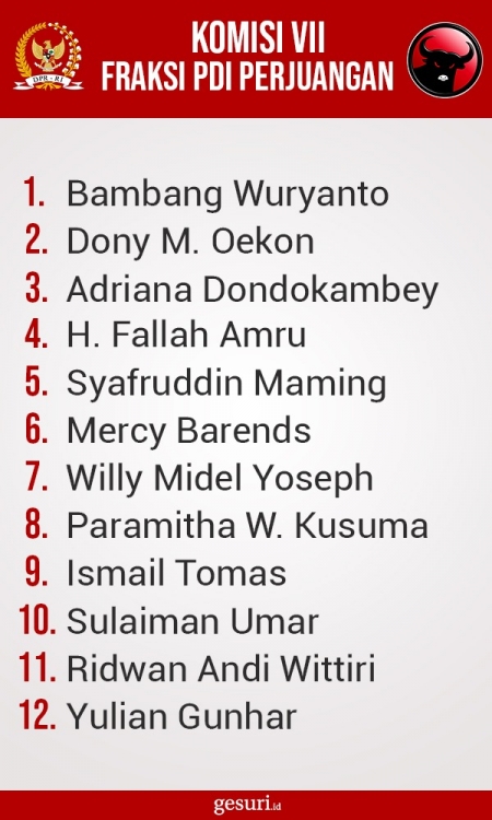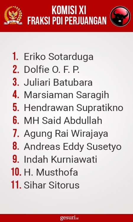 Daftar Nama Anggota Komisi VII DPR RI Fraksi PDI Perjuangan