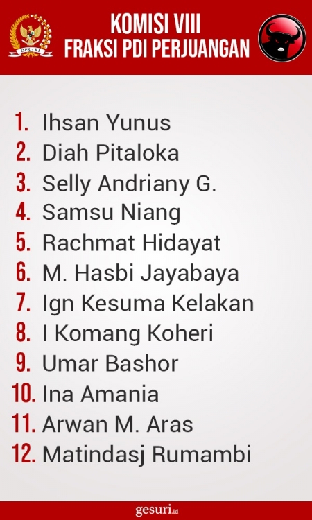 Daftar Nama Anggota Komisi VIII DPR RI Fraksi PDI Perjuangan