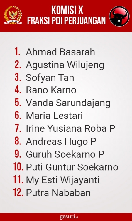 Daftar Nama Anggota Komisi X DPR RI Fraksi PDI Perjuangan