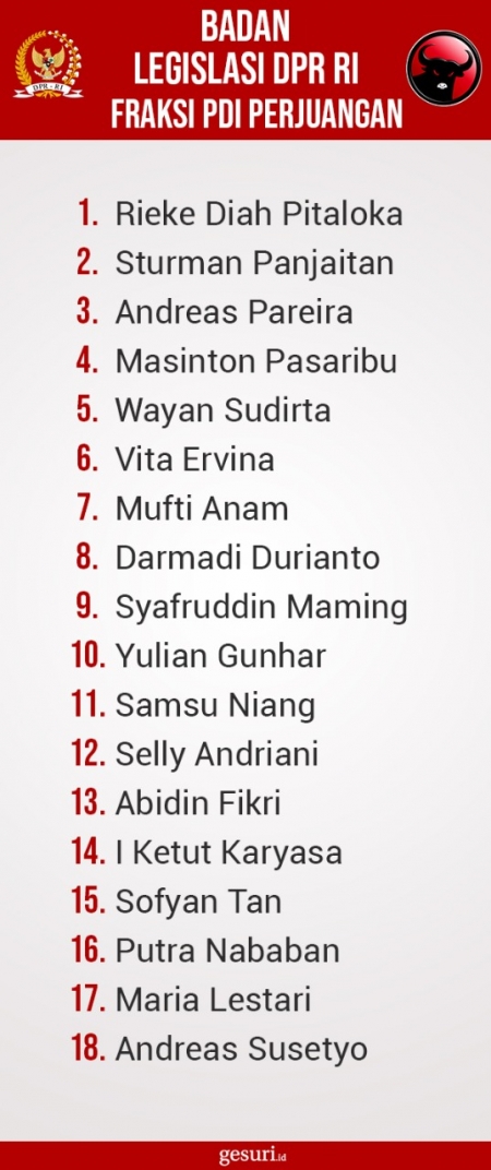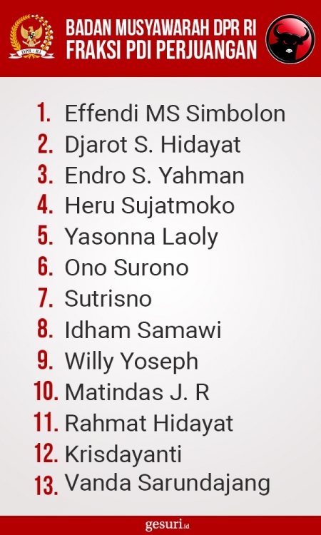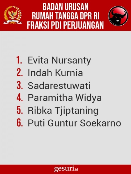 Daftar Nama Anggota BURT DPR RI Fraksi PDI Perjuangan