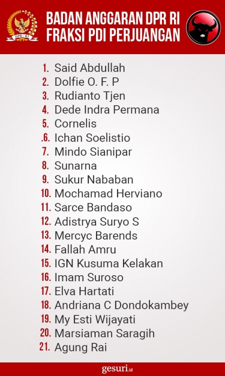 Daftar Nama Anggota Badan Anggaran DPR RI Fraksi PDI Perjuan