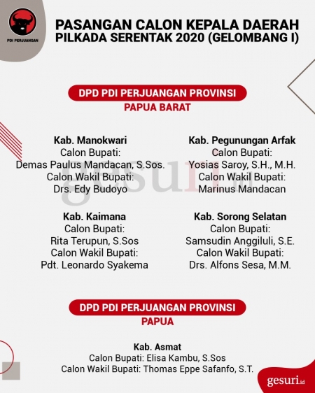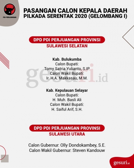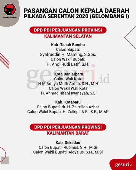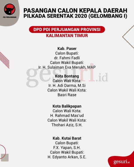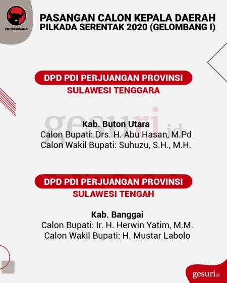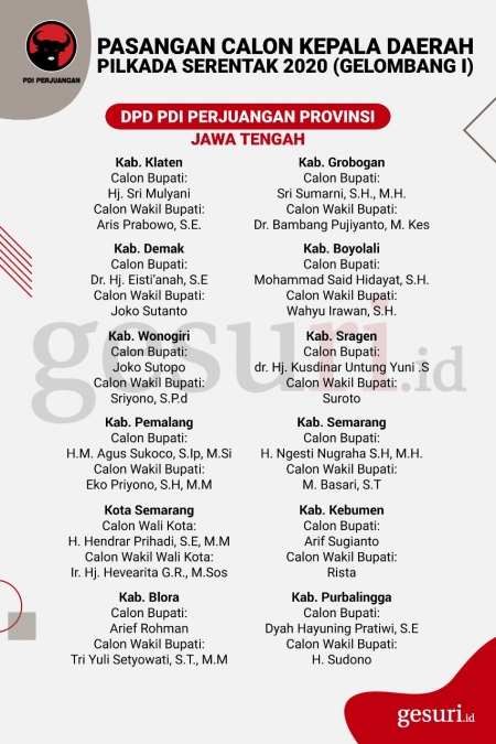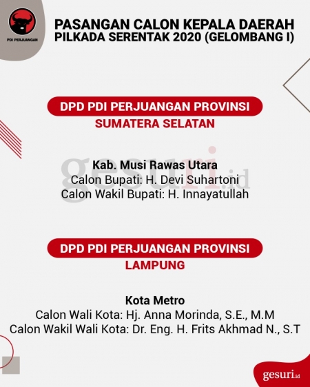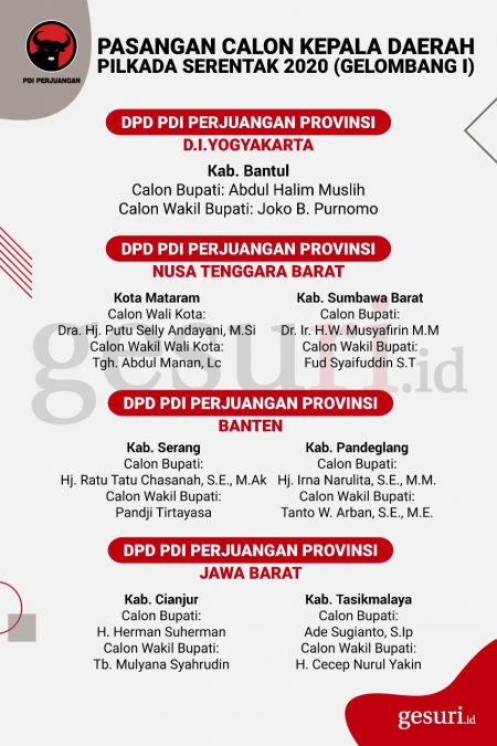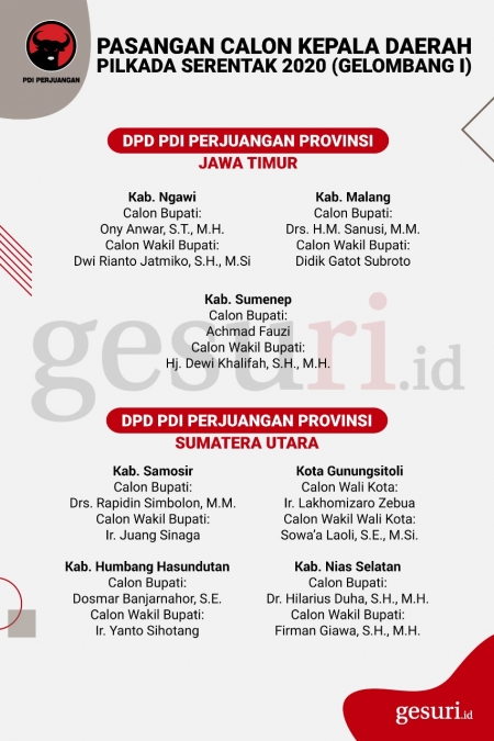 Calon Kepala Daerah Pilkada 2020 yang Diusung PDI Perjuangan
