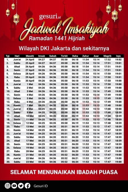 Jadwal Imsakiyah Ramadan 2020/1441H untuk DKI Jakarta