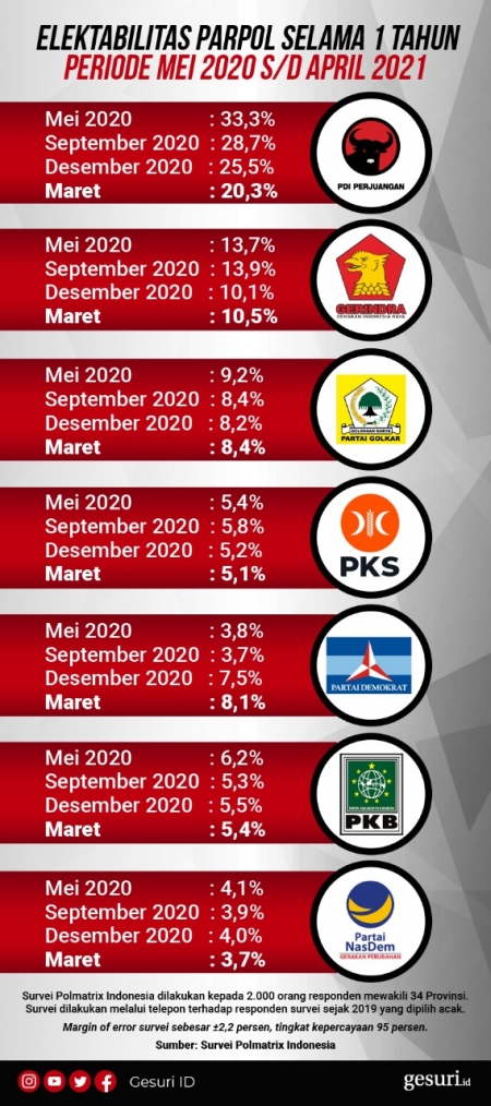 Elektabilitas Parpol Selama Mei 2020-April 2021