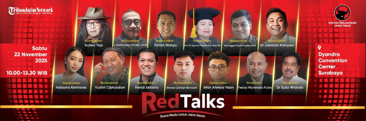 Surabaya, Gesuri.id — Tribun Jatim Network bersama DPD PDI Perjuangan Jawa Timur akan menggelar RedTalks: Suara Muda untuk Jatim Keren pada Sabtu (22/11/2025) di Dyandra Convention Center, Surabaya.