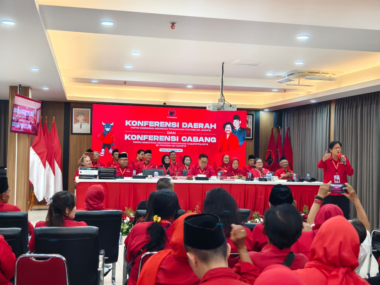 Jakarta, Gesuri.id - Dewan Pimpinan Daerah (DPD) PDI Perjuangan DKI Jakarta menggelar Konferensi Daerah (Konferda) serta Konferensi Cabang (Konfercab) PDI Perjuangan Kabupaten/Kota se-DKI Jakarta di Kantor DPD PDI Perjuangan DKI Jakarta, Jakarta Timur, Minggu (21/12).