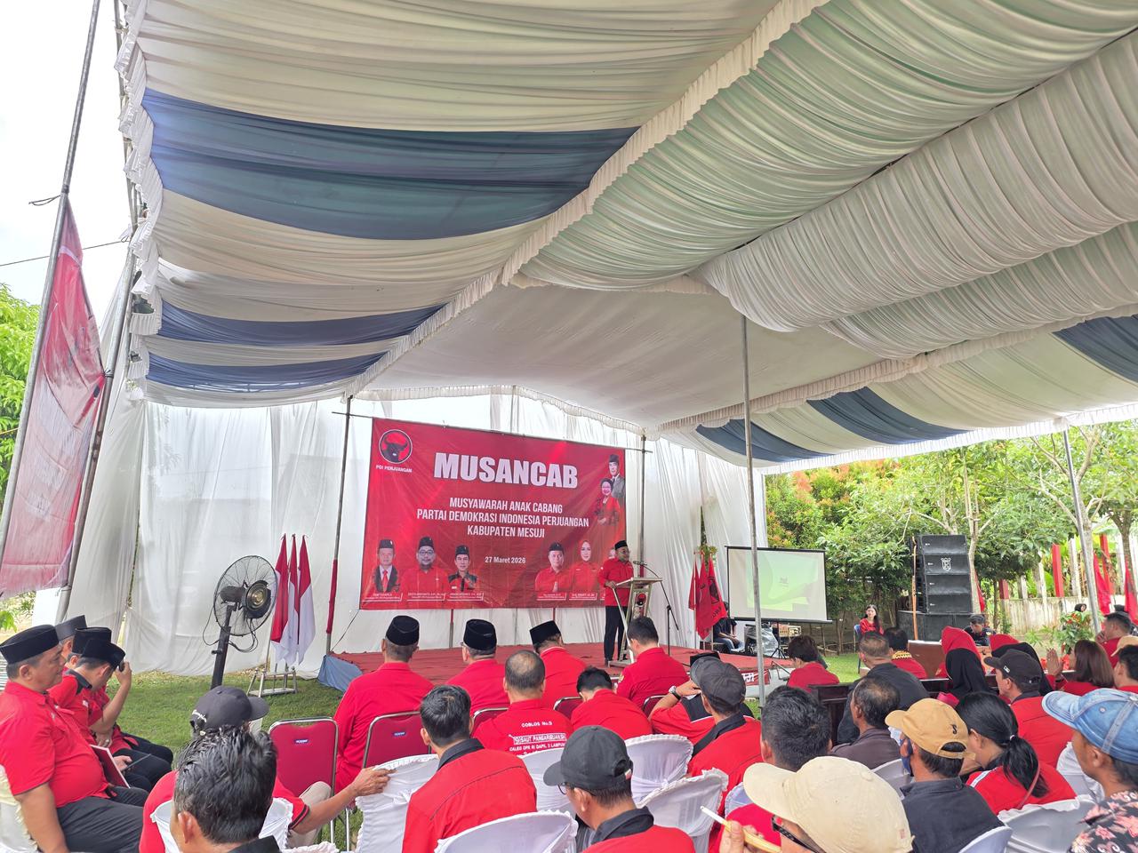 Desta bersama jajaran pengurus baru melaksanakan Musyawarah Anak Cabang (Musancab) serentak bagi seluruh Pengurus Anak Cabang (PAC) se-Kabupaten Mesuji di Kantor DPC PDI Perjuangan Mesuji, Sidomulyo, Jumat (27/3/2026).