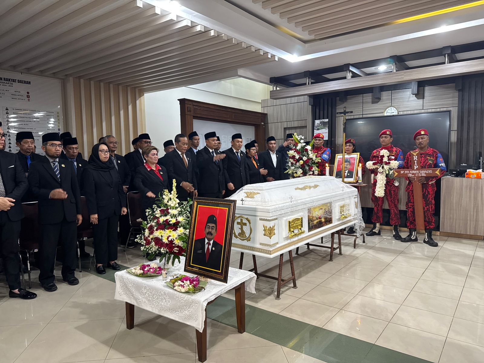 Ketua DPRD Wisnu Sabdono Putra didampingi Pimpinan & Anggota memimpin upacara penghormatan terakhir di Gedung DPRD sebelum dimakamkan di Sasonoloyo di Keparakan Mergangsan Yogyakarta.