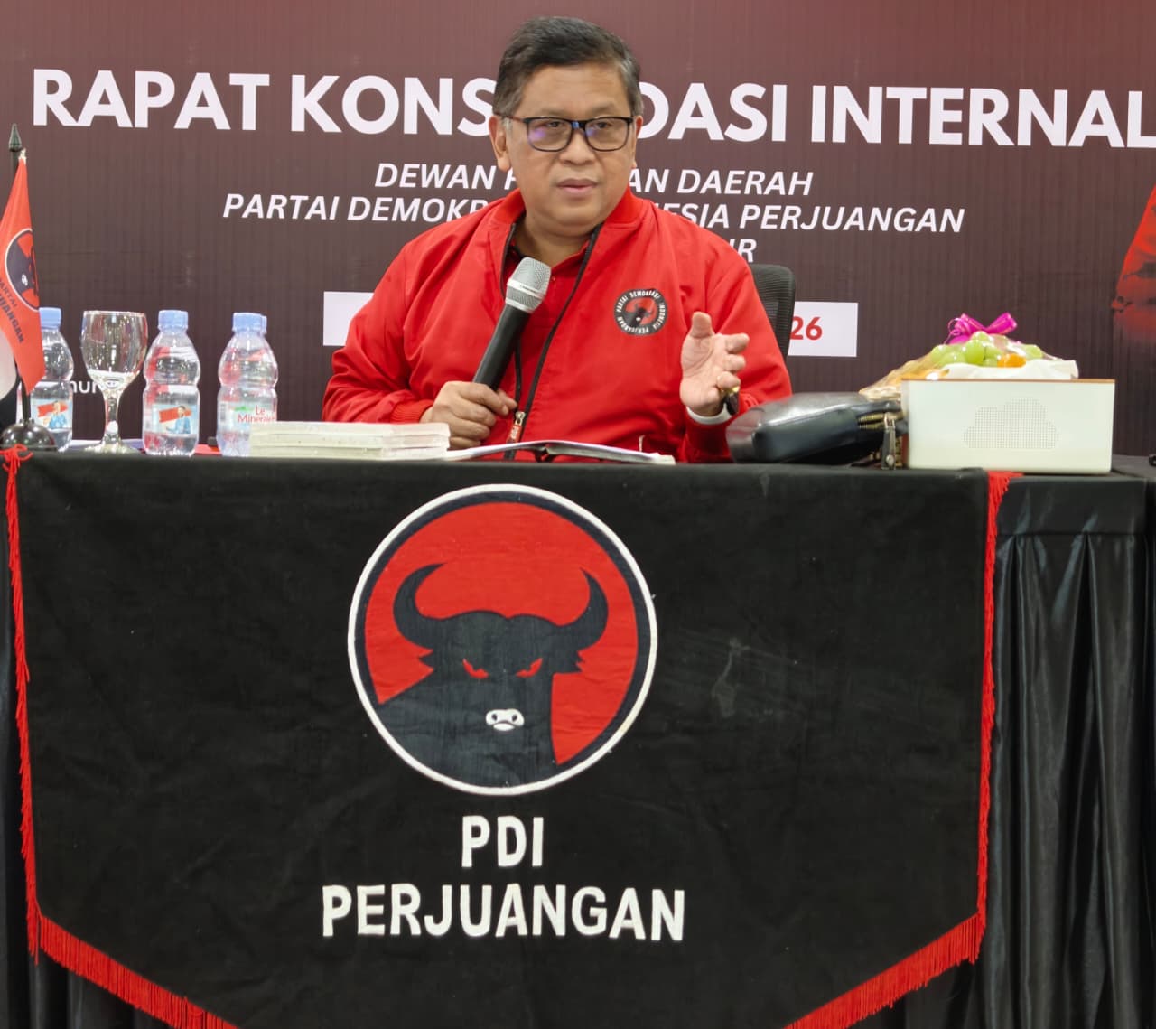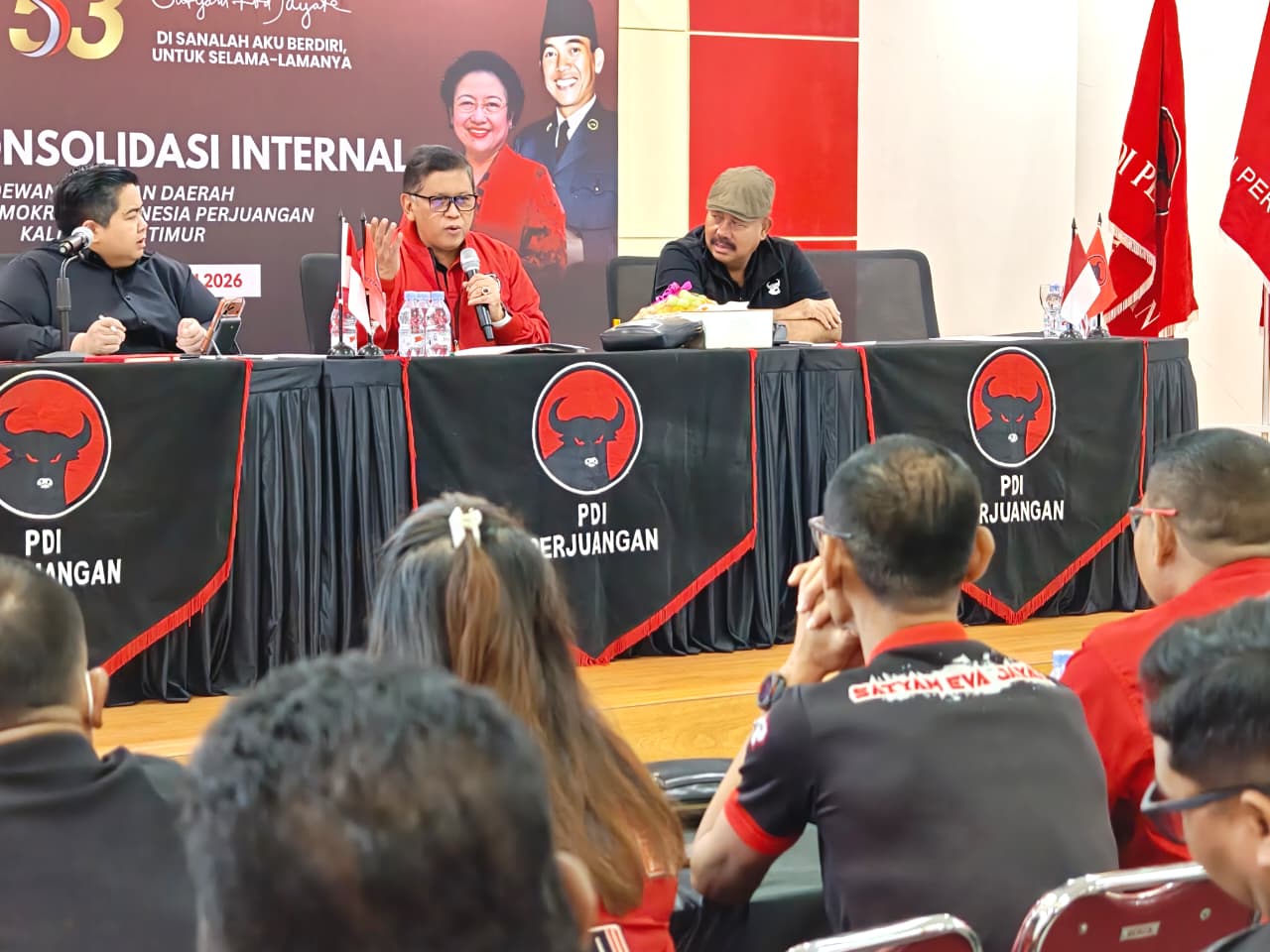 Samarinda, Gesuri.id – Sekjen PDI Perjuangan, Hasto Kristiyanto, memimpin rapat konsolidasi internal jajaran Dewan Pimpinan Daerah (DPD) PDI Perjuangan Kalimantan Timur di Samarinda, Senin (2/2/2026).