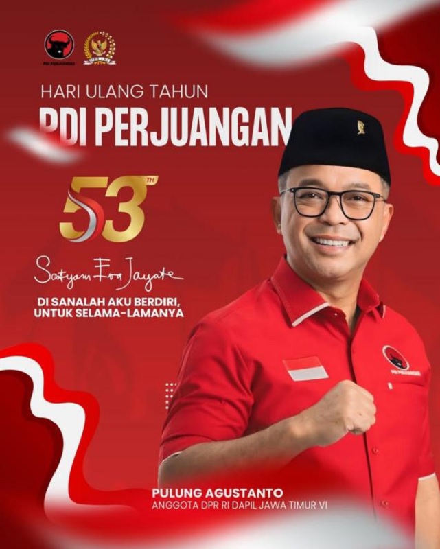 Jakarta, Gesuri.id - Anggota Komisi III DPR RI, Pulung Agustanto mengucapkan Selamat Ulang Tahun ke-53 PDI Perjuangan.