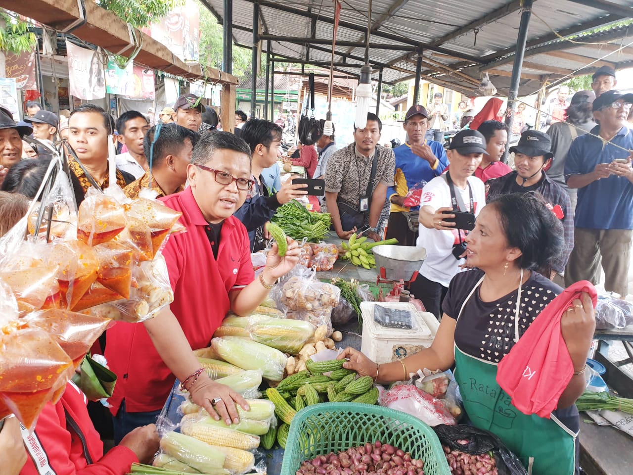 Situbondo, Gesuri.id - Hari ketiga Safari Kebangsaan VI di wilayah 'tapal kuda' Provinsi Jawa Timur, Sekjen PDI Perjuangan Hasto Kristiyanto melakukan blusukan di pasar tradisional Panji, Situbondo, Minggu (27/1).