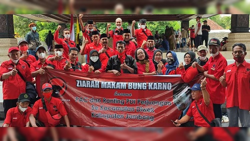 Jombang, Gesuri.id - PAC PDI Perjuangan Diwek dan Pengurus Ranting se-Kecamatan Diwek berziarah ke makam Bung Karno di Kota Blitar. Ziarah untuk mendoakan arwah Bung Karno, juga untuk menambah semangat juang para kader seperti diajarkan Pemimpin Besar Revolusi Indonesia tersebut.