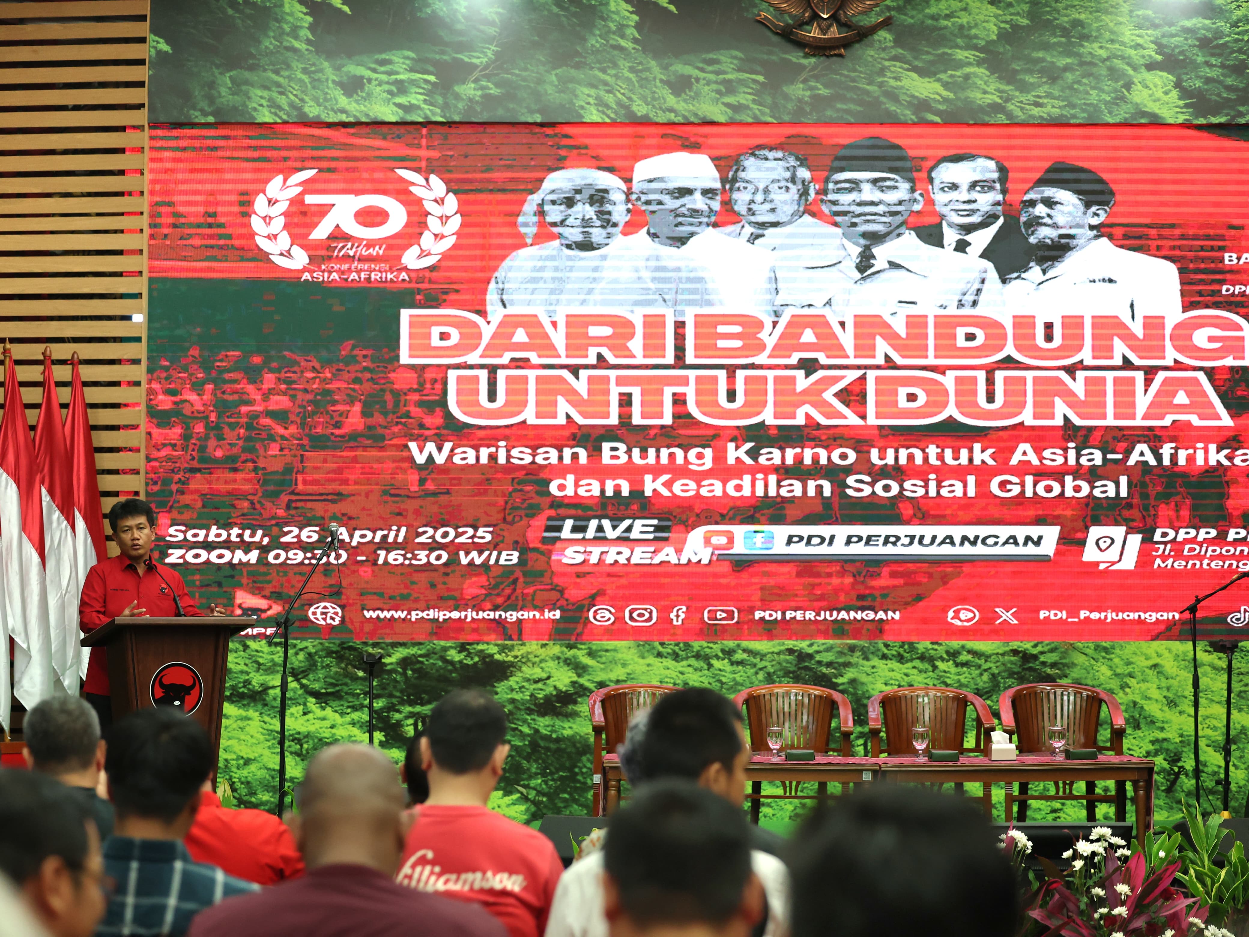 Jakarta, Gesuri.id - DPP PDI Perjuangan menggelar peringatan 70 tahun Konferensi Asia Afrika (KAA) dengan diskusi "Warisan Bung Karno untuk Asia-Afrika dan Keadilan Sosial Global" yang digelar Badan Sejarah Indonesia PDI Perjuangan, Sabtu (26/4/2025).