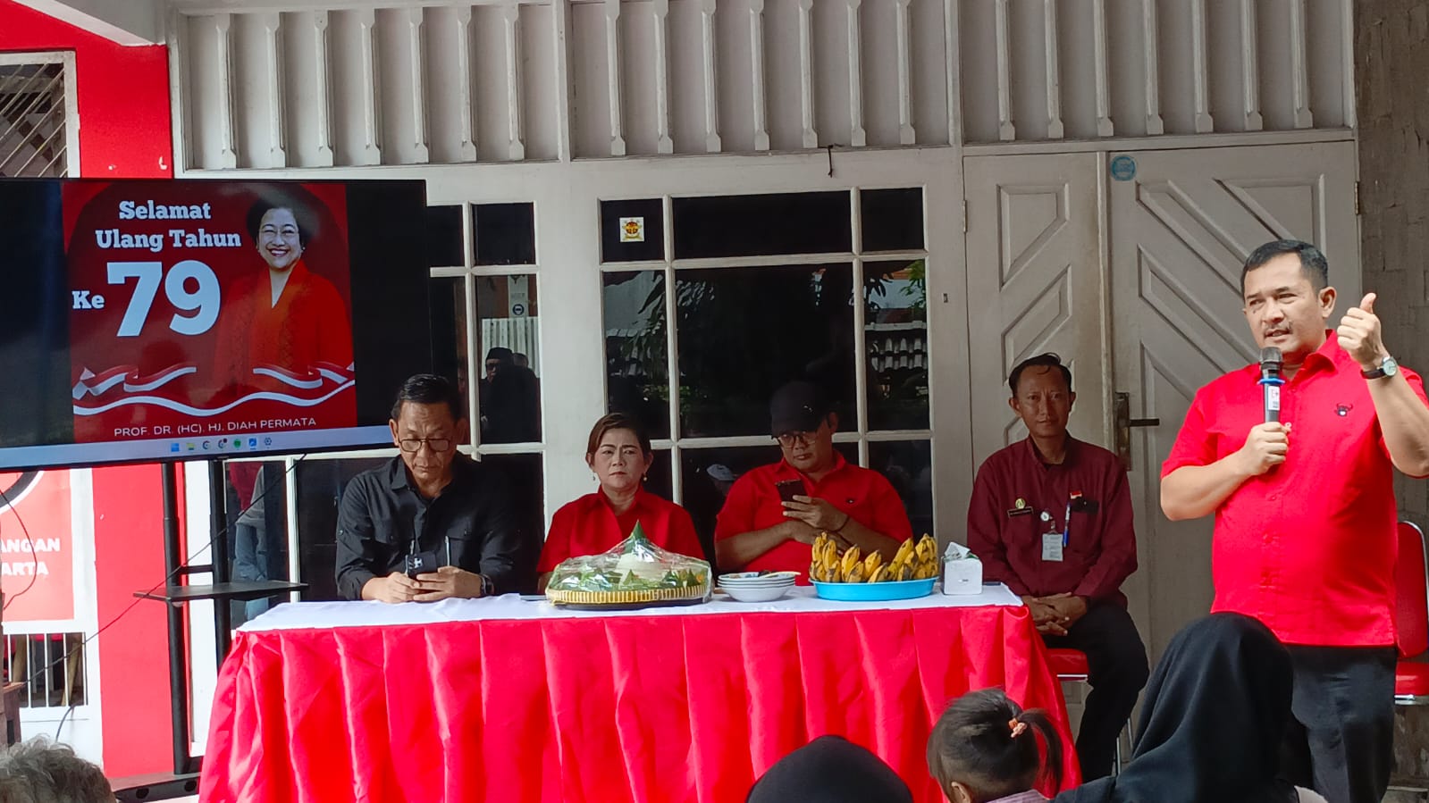 "Kita di sini merayakan ulang tahun Ibu Ketua Umum PDI Perjuangan, ke-79. Alhamdulillah angka prevalensi stunting DIY dari 14,8 persen pada tahun 2024 kini turun jadi 8,46 persen di akhir tahun 2025. Ini langkah konkret dan istilahnya berdampak," kata Hasto Wardoyo, Walikota Yogyakarta.