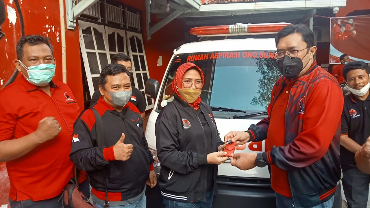 Cirebon, Gesuri.id - Ketua DPD PDI Perjuangan Jawa Barat, Ono Surono, menyerahkan bantuan satu unit mobil ambulans ke DPC PDI Perjuangan Kota Cirebon, Sabtu (31/7).