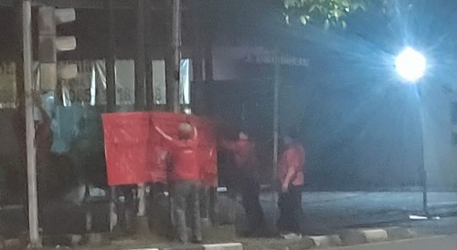 "Pemasangan spanduk dalam menyambut HUT partai yang ke-49 dilakukan PAC beserta para jajaran dan PR Gandaria Utara," ungkapnya.