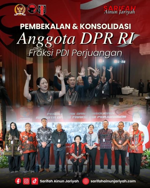 Jakarta, Gesuri.id - Anggota DPR RI Sarifah Ainun Jariyah, mengatakan pembekalan dan konsolidasi anggota DPR RI fraksi PDI Perjuangan menjadi momentum penting untuk memperkuat soliditas.