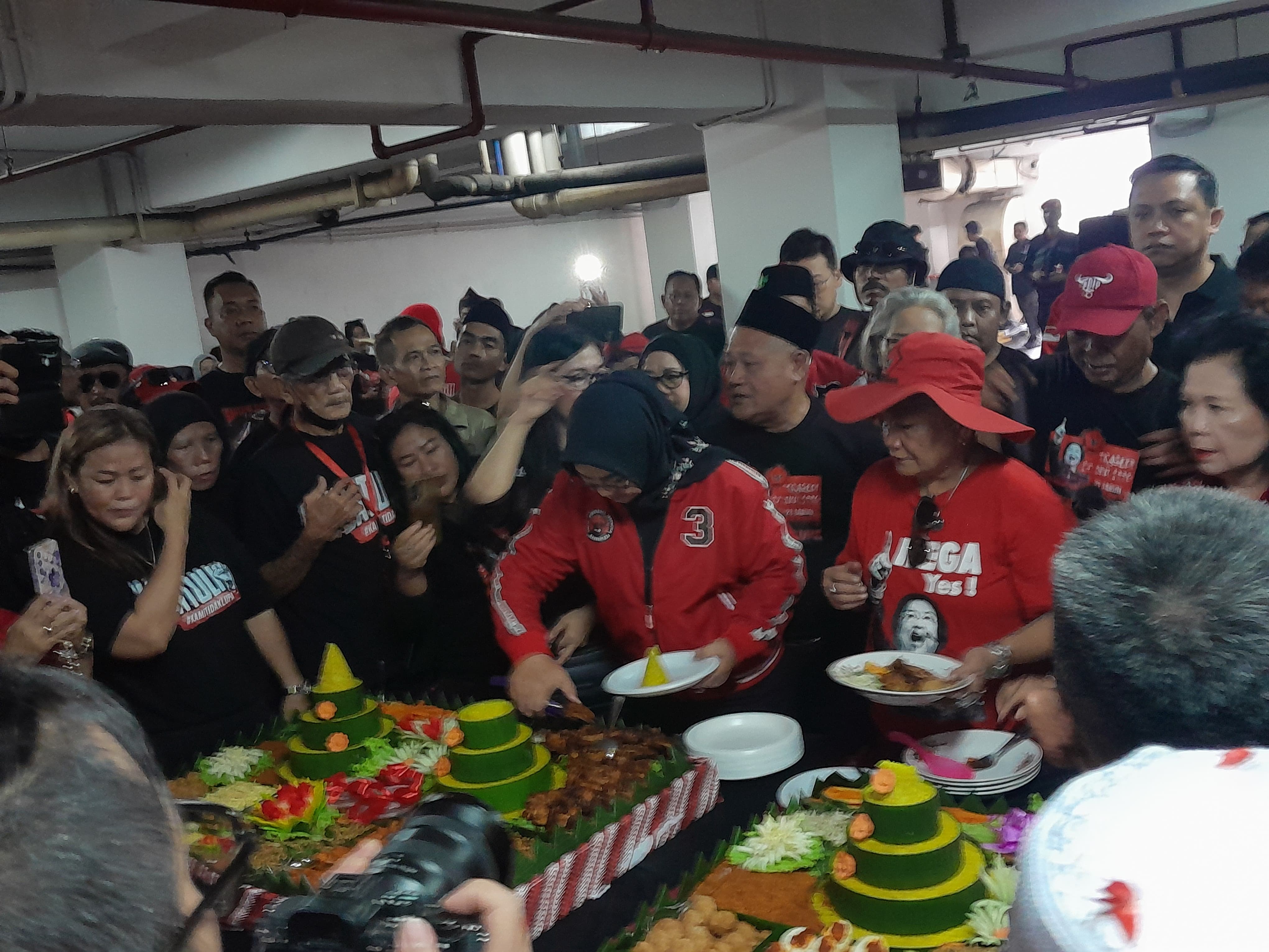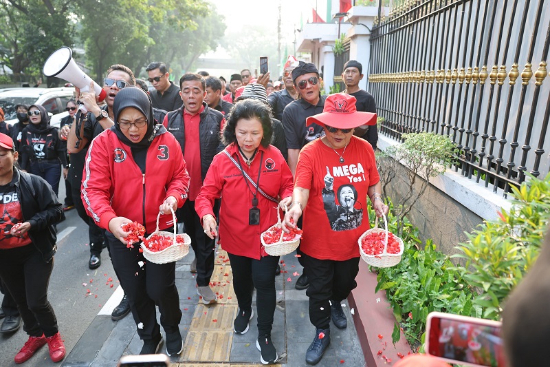 Usai doa, Ribka mengajak seluruh elite PDIP untuk memulai prosesi tabur bunga, dimulai dari gerbang depan kantor DPP PDIP, lalu dilanjutkan ke halaman dan area parkir kantor partai.