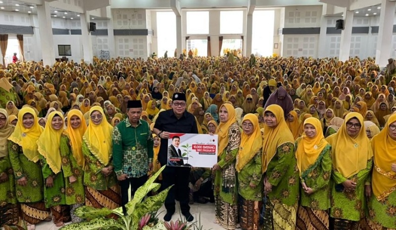 "Berkat doa dan pilihan ibu-ibu pada pemilu kemaren, alhamdulillah saat ini saya sudah menjadi anggota DPR RI, dan ditugasi di Komisi IV yang bermitra dengan Kementrian Pertanian, Kelautan, Kehutanan, Pangan dan Karantina. Kalau ada ibu-ibu yang berurusan dengan mitra saya itu, silahkan tugaskan saya mengurusnya," ucap Alex Indra Lukman, saat memberikan sambutan.