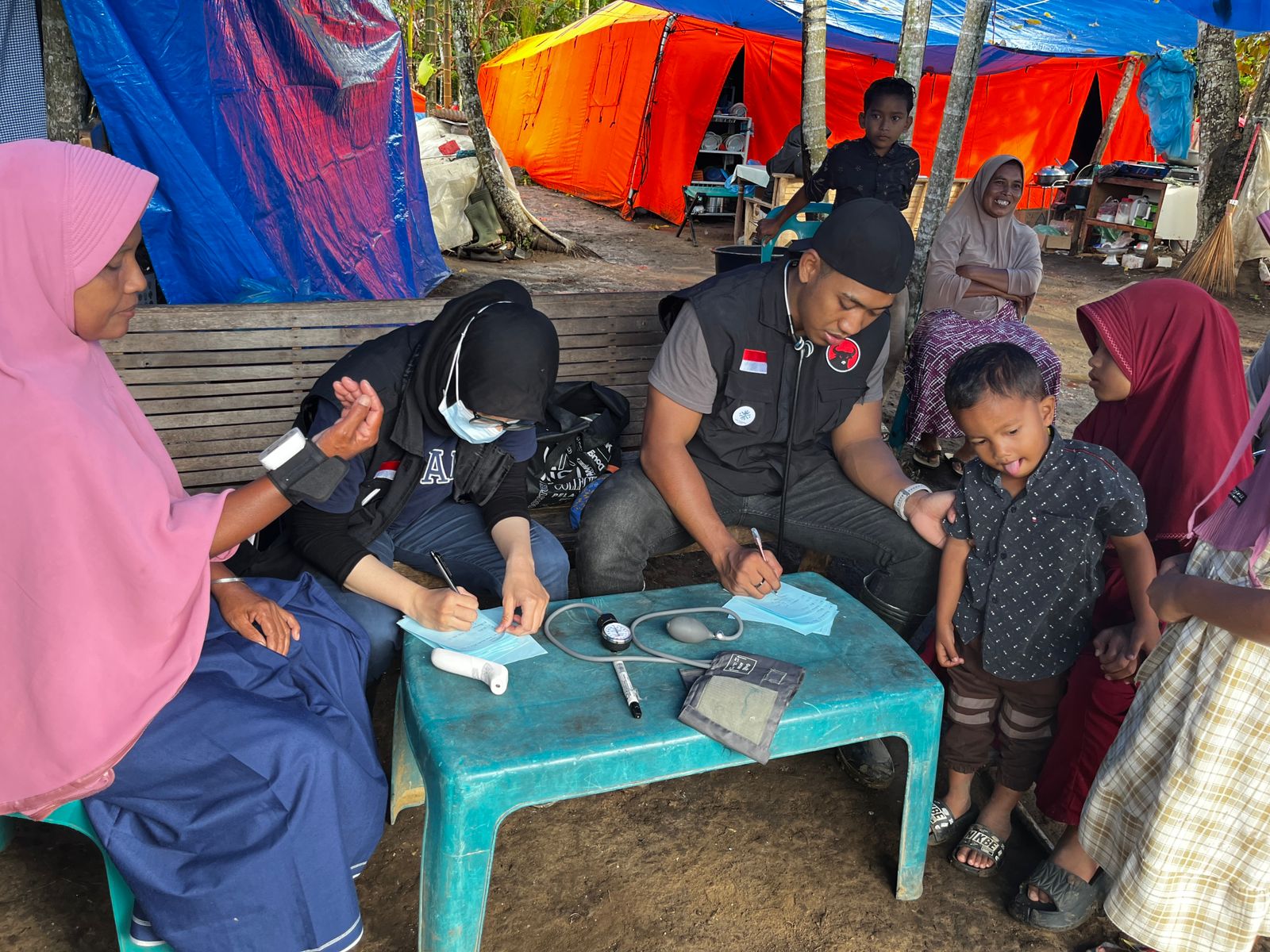 Selain membuka layanan medis, tim relawan juga aktif mengisi tangki air bersih serta memperkuat dukungan logistik kesehatan bagi para pengungsi.