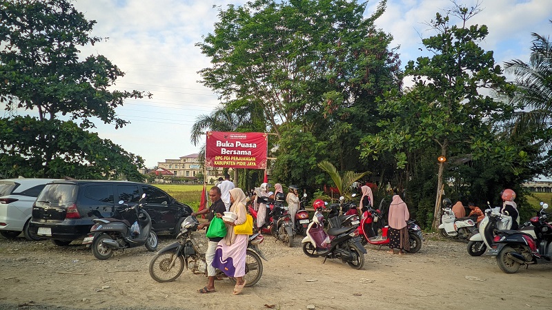 Ketua DPC PDI Perjuangan Pidie Jaya, Agusrianto, mengatakan paket makanan berbuka tersebut diperuntukkan bagi warga yang berada di sekitar kantor partai serta masyarakat yang saat ini menempati hunian sementara (huntara) di Gedung MTQ Pidie Jaya.