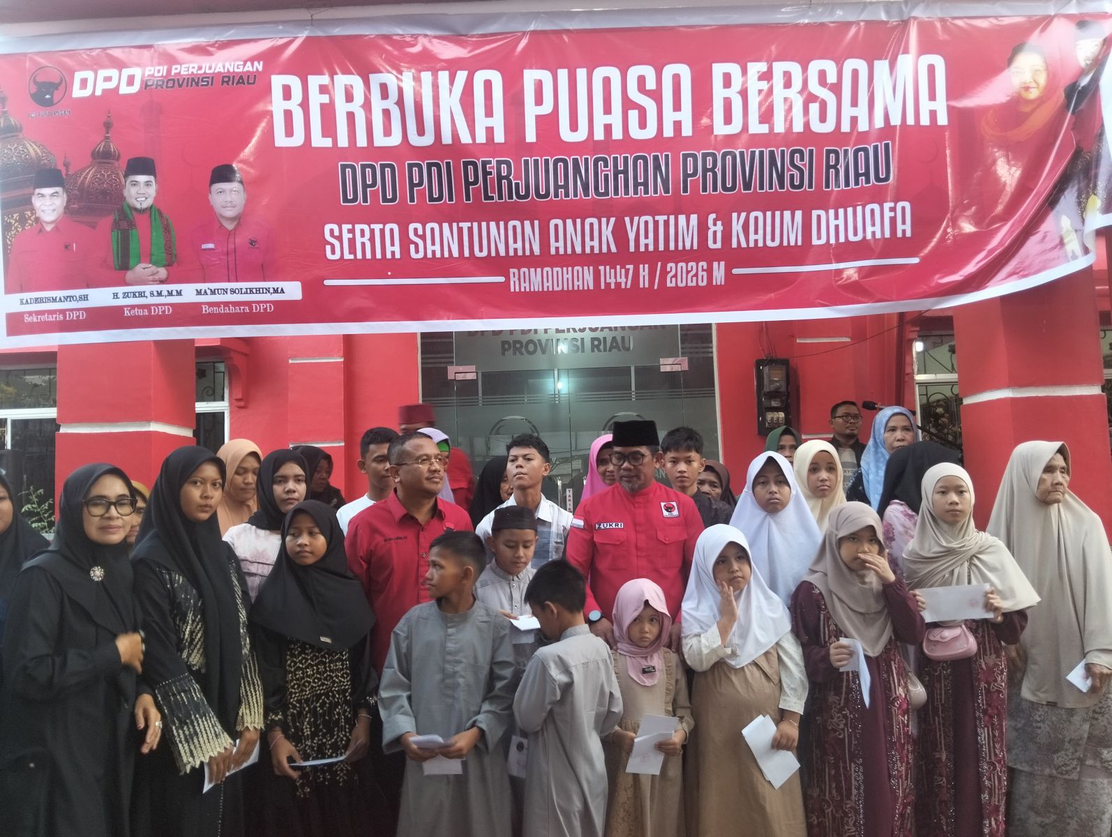 Ketua DPD PDI Perjuangan Riau, Zukri, dalam sambutannya menekankan bahwa keberadaan partai harus dirasakan manfaatnya secara langsung oleh masyarakat, terutama di bulan suci Ramadan 1447 Hijriah.