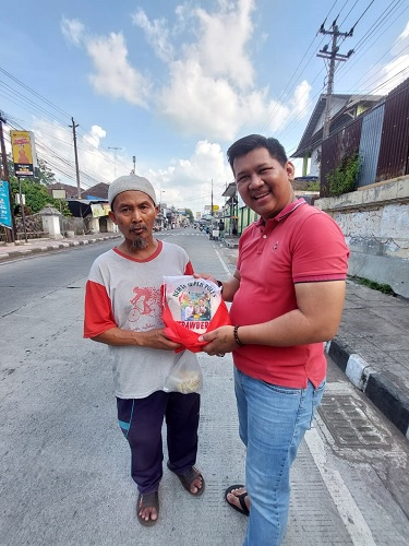 Dalam kegiatan tersebut, Bonar membagikan paket beras kepada warga Salatiga yang sehari-hari hidup dalam kondisi serba kekurangan.
