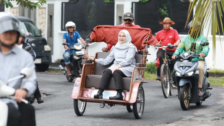 “Nyaman juga naik becak listrik ini, tahu-tahu sudah sampai kantor,” ujar Ipuk.