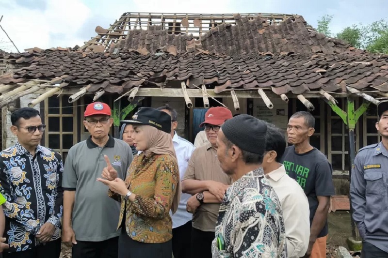 Dalam peninjauan tersebut, Bupati mendatangi sejumlah rumah warga yang mengalami kerusakan.