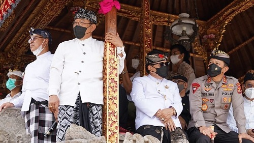 Kedatangan orang nomor 2 di Bali itu untuk menghadiri Pelebon mendiang Permaisuri dari Ida Dwagung Peliatan IX, Anak Agung Oka Susmini.