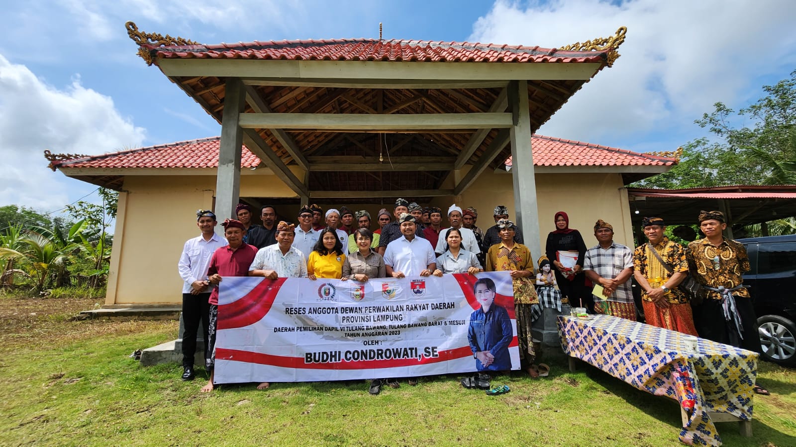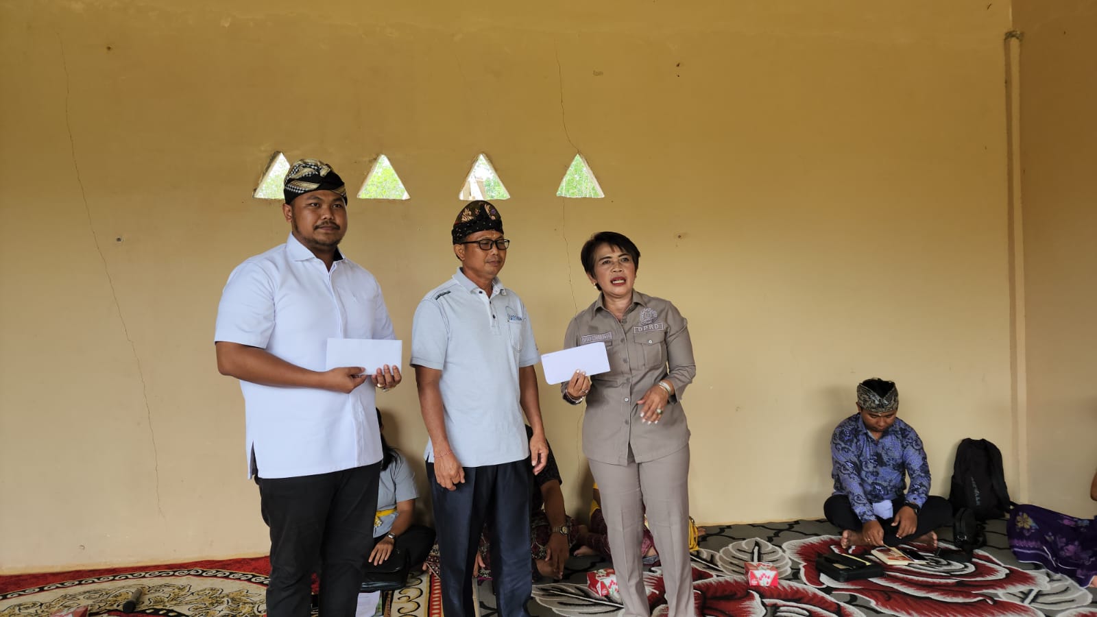 Mesuji, Gesuri.id - Anggota DPRD Provinsi Lampung, Budhi Condrowati didampingi Pegiat Petani Milenial, Dwinan Rahmandi dan Kawan Farah, kunjungan sekaligus menyalurkan sejumlah bantuan ke Balai Banjar Pura Khayangan Tunggal Simpang Mesuji, Kecamatan Simpang Pematang, Kabupaten Mesuji, Minggu (12/03/23).