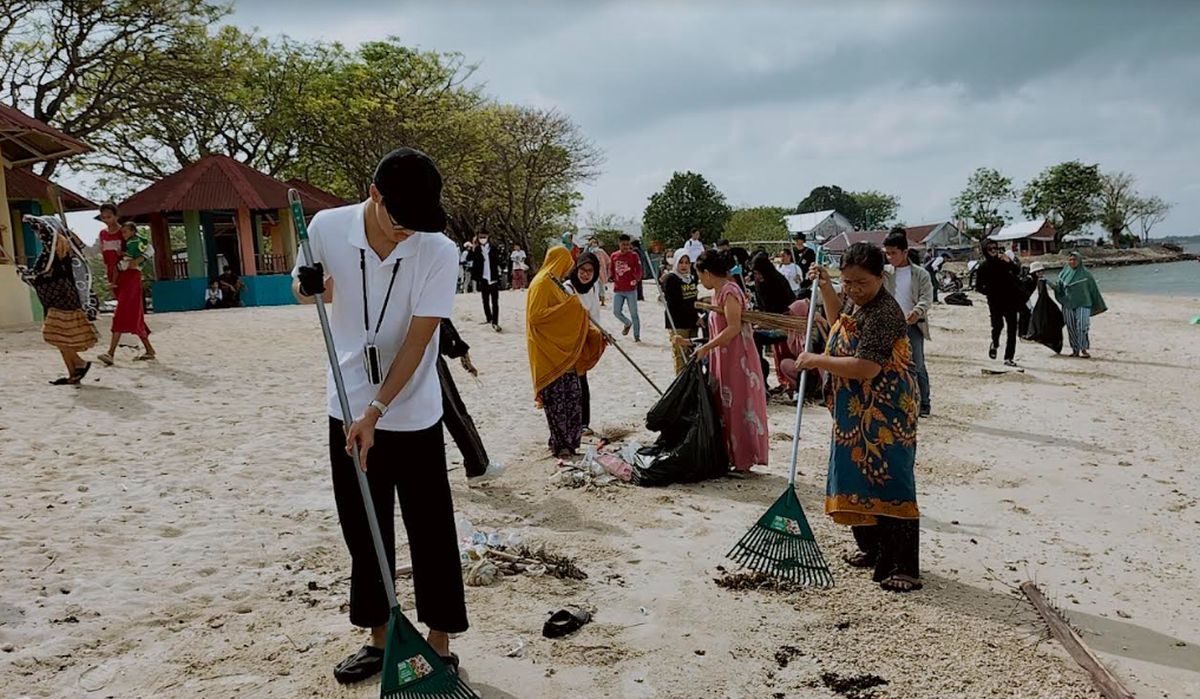 Setelah itu, Alam bersama warga berjalan menuju pantai dengan membawa sejumlah perlengkapan kebersihan mulai dari sapu, sarung tangan, hingga trash bag.