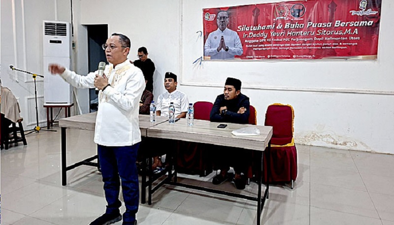 Jakarta, Gesuri.id - Anggota Komisi ll DPR RI dari fraksi PDI Perjuangan, Deddy Yevry Hanteru Sitorus, menggelar kegiatan buka puasa bersama masyarakat di Cafe Sayn, Jalan A. Yani, Kelurahan Nunukan Tengah, Kecamatan Nunukan, Kabupaten Nunukan, Provinsi Kalimantan Utara, dikutip Selasa (10/3/2026).
