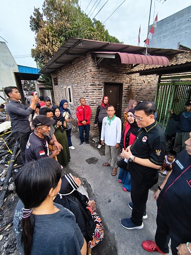 Medan, Gesuri.id - Ketua DPC PDI Perjuangan Kota Medan, Hasyim SE bersama sejumlah Struktur DPC Partai turun langsung meninjau lokasi kejadian dan menyerahkan bantuan uang tunai kepada para korban kebakaran di Jalan Jermal 9, Gang Keluarga, Kecamatan Medan Denai, Rabu (12/11/2025) lalu.