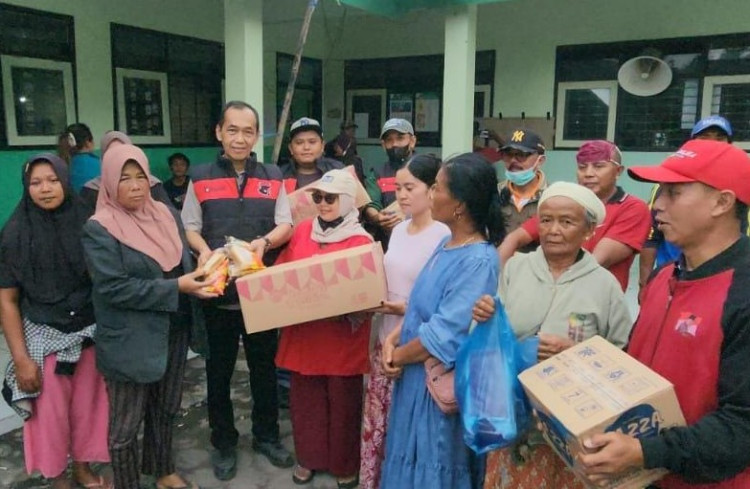 Lumajang, Gesuri.id - Gerak cepat, kader banteng di Lumajang menyalurkan makanan dan minuman (mamin) berupa ratusan roti dan air mineral untuk warga terdampak erupsi Semeru, Kamis (20/11/2025).