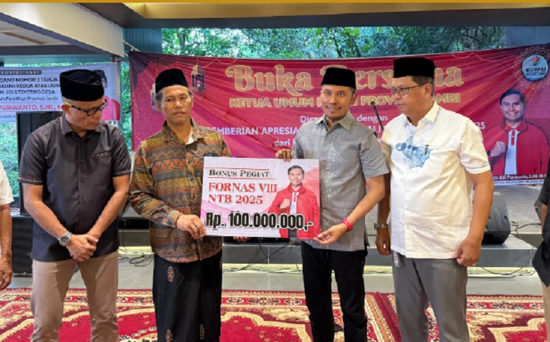 Dalam suasana hangat buka puasa bersama keluarga besar KORMI Jambi Sabtu (28/2/2026), Edi menyerahkan bonus uang tunai kepada para peraih medali Festival Olahraga Masyarakat Nasional (FORNAS) VIII di Nusa Tenggara Barat (NTB).