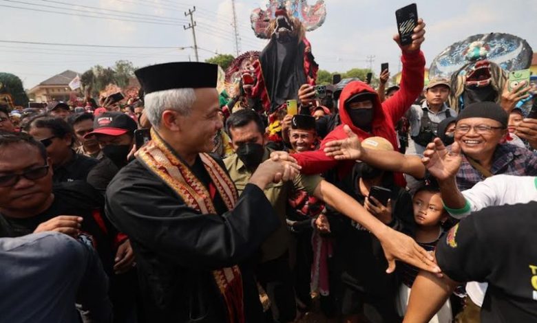Sesaat setelah itu, Ganjar bersama seniman dan tokoh masyarakat jalan kaki menuju lapangan desa setempat. Luar biasa, sekitar 5.000 orang sudah menunggu kehadirannya. Tepat di pintu masuk lapangan, lagi-lagi, Ganjar disambut tari reog.