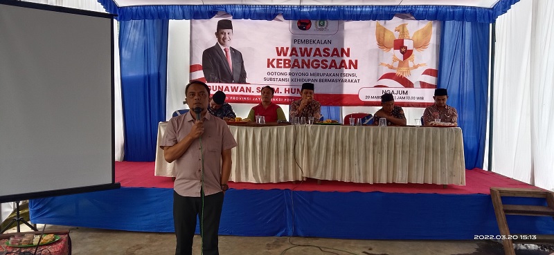 Malang, Gesuri.id - Anggota DPRD Jawa Timur Fraksi PDI Perjuangan dapil Malang Raya, H. Gunawan, S.H.,M.Hum, melanjutkan pembekalan Wawasan kebangsaan (Wasbang) di Desa Ngajum, Kecamatan Ngajum, Kabupaten Malang, Minggu (20/3). Tepatnya di Dusun Sembon Sumberejo, Ngajum.