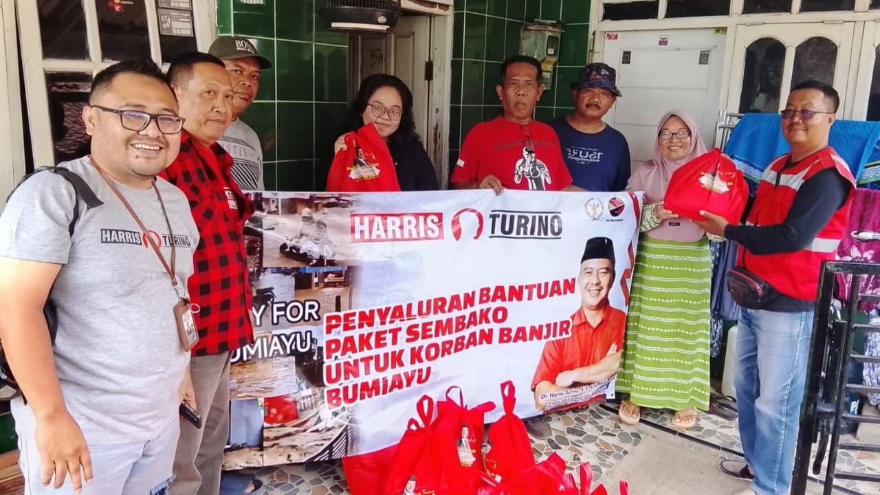 Jakarta, Gesuri.id - Anggota Komisi XI, DPR RI, Harris Turino menyalurkan bantuan paket sembako kepada korban banjir bandang di Kecamatan Bumiayu, Kabupaten Brebes, Jawa Tengah.