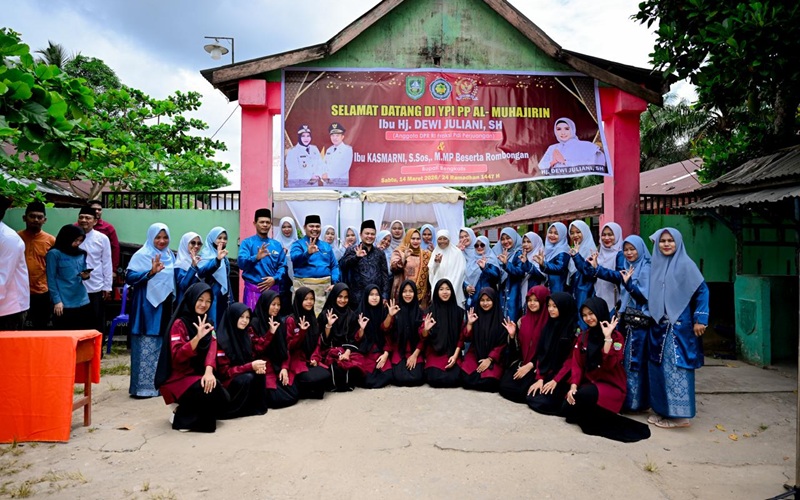 Bengkalis, Gesuri.id - Bupati Bengkalis yang juga politisi PDI Perjuangan Kasmarni, mendampingi Anggota DPR RI dari Fraksi PDI Perjuangan Dewi Juliani, dalam kegiatan penyerahan bantuan sembako melalui program Corporate Social Responsibility (CSR) bersama Bank Rakyat Indonesia kepada Yayasan Pendidikan Islam Pondok Pesantren Almuhajirin di Desa Muara Basung Kecamatan Pinggir, Sabtu, 14 Maret 2026.