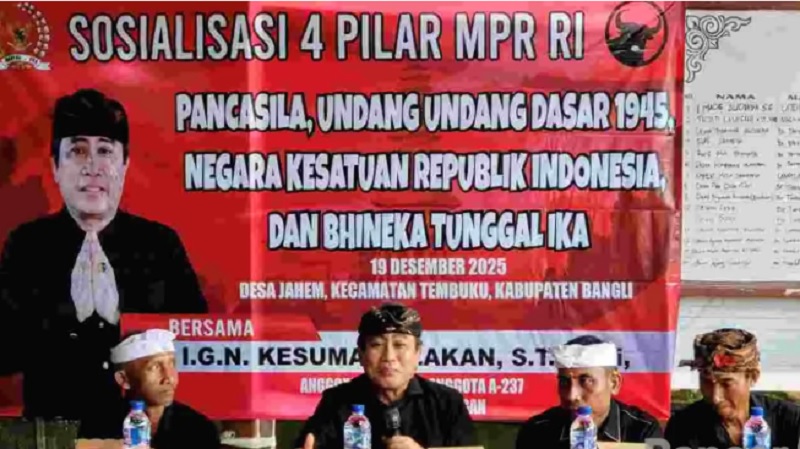Hal tersebut disampaikannya dalam kegiatan Sosialisasi Empat Pilar Kebangsaan yang digelar di Desa Jehem, Kecamatan Tembuku, Kabupaten Bangli, Jumat (19/12/2025).