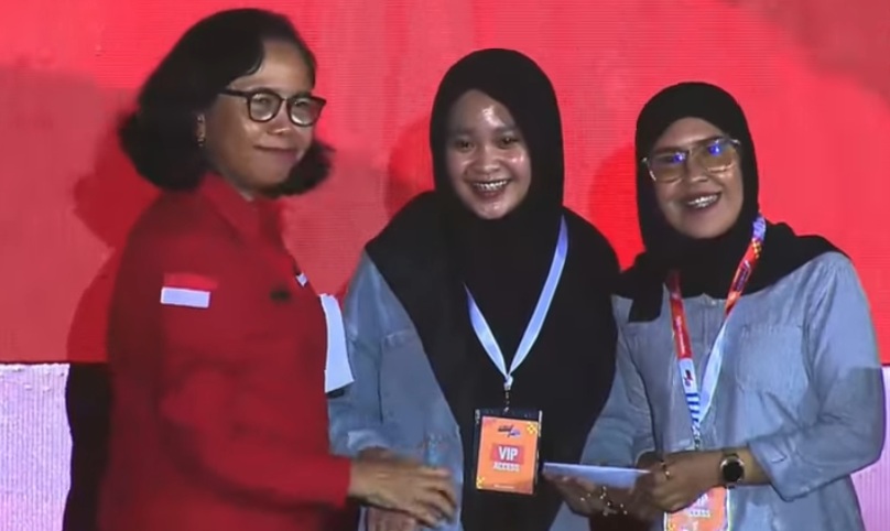 Yogyakarta, Gesuri.id — Ketua DPP PDI Perjuangan Bidang Pemuda dan Olahraga yang juga Wakil Ketua Komisi X DPR RI Fraksi PDI Perjuangan, MY Esti Wijayati, menyerahkan penghargaan kepada salah satu mahasiswa berprestasi penerima beasiswa Kartu Indonesia Pintar (KIP) Kuliah dalam ajang Merah Muda Fest 2025, rangkaian peringatan 97 Tahun Sumpah Pemuda yang digelar DPP PDI Perjuangan di Yogyakarta, Sabtu (1/11).