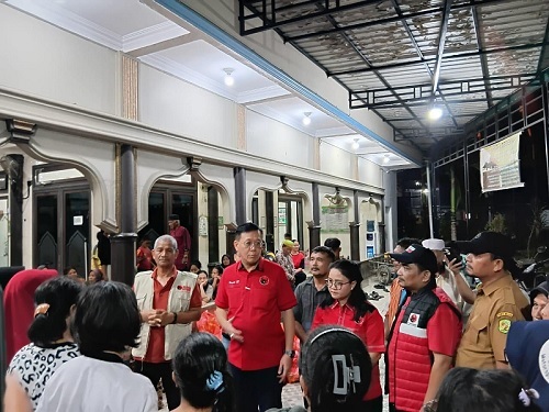 Medan, Gesuri.id - DPC PDI Perjuangan Kota Medan bersama dengan DPD PDI Perjuangan Provinsi Sumatera Utara mengunjungi masyarakat korban banjir di Jl. Titi Pahlawan Gg. Asam Lorong Sekolah Kel. Martubung Kecamatan Medan Labuhan Kota Medan pada Senin (13/10).