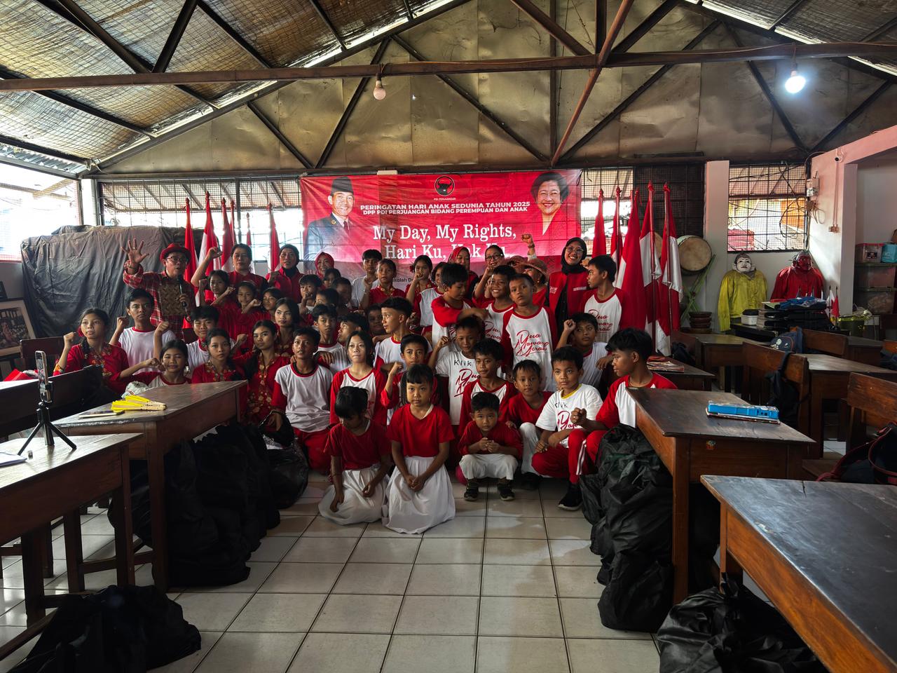 Jakarta, Gesuri.id - DPP PDI Perjuangan memperingati Hari Anak Sedunia dengan berbagi kasih di Sekolah Darurat Kartini Ibu Guru Kembar di Jakarta Utara, Kamis (20/11).