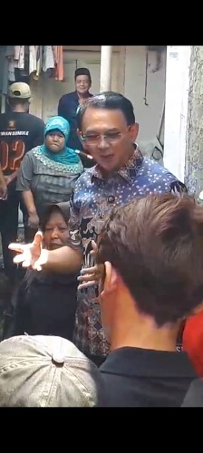 Ahok, didampingi Ketua Pengurus Ranting Maria beserta Galang Rianto mantan pengurus PAC Kebayoran Baru PDI Perjuangan Kelurahan Cipete Utara dalam rangka mensosialisasikan program Gentengisasi kepada masyarakat.