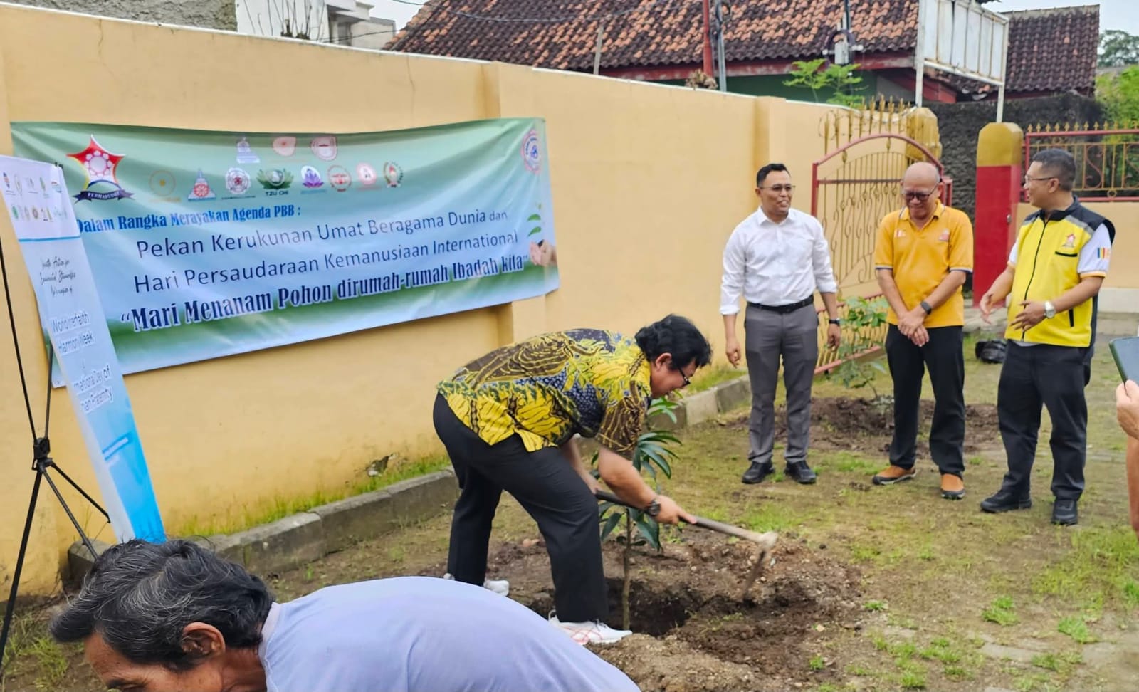 "Menanam pohon adalah salah satu cara untuk berpartisipasi mempromosikan nilai-nilai kerukunan antarumat beragama sekaligus bentuk kepedulian nyata terhadap lingkungan," ujar Sugianto usai menanam pohon mangga dalam acara tersebut, Senin (2/2).